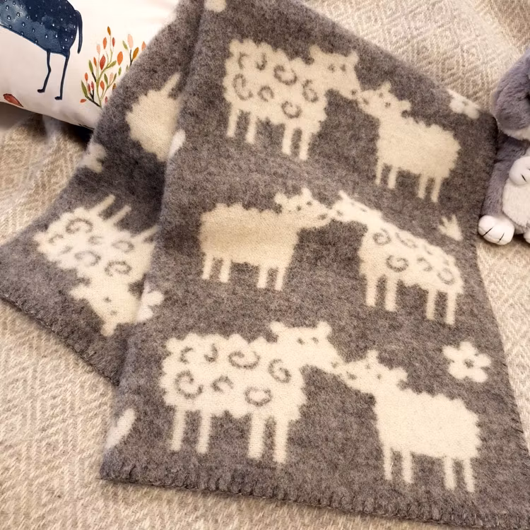 Barnfilt i 100% ekologisk lammull från Klippans yllefabrik. Dubbelvävd. Mått 65 x 90 cm
