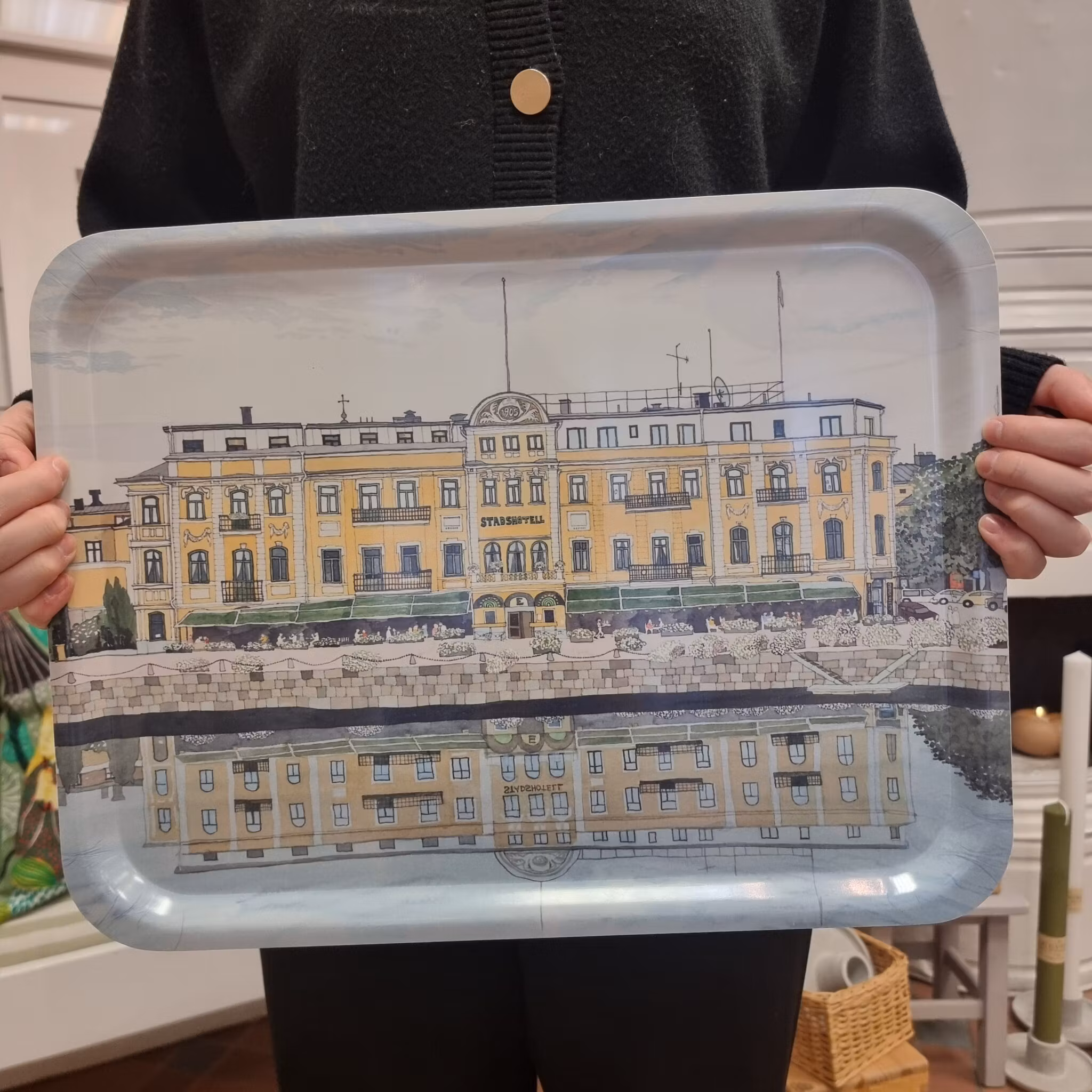Bricka är i svensktillverkad av formpressad björkfanér. Mått 43 x 32 cm