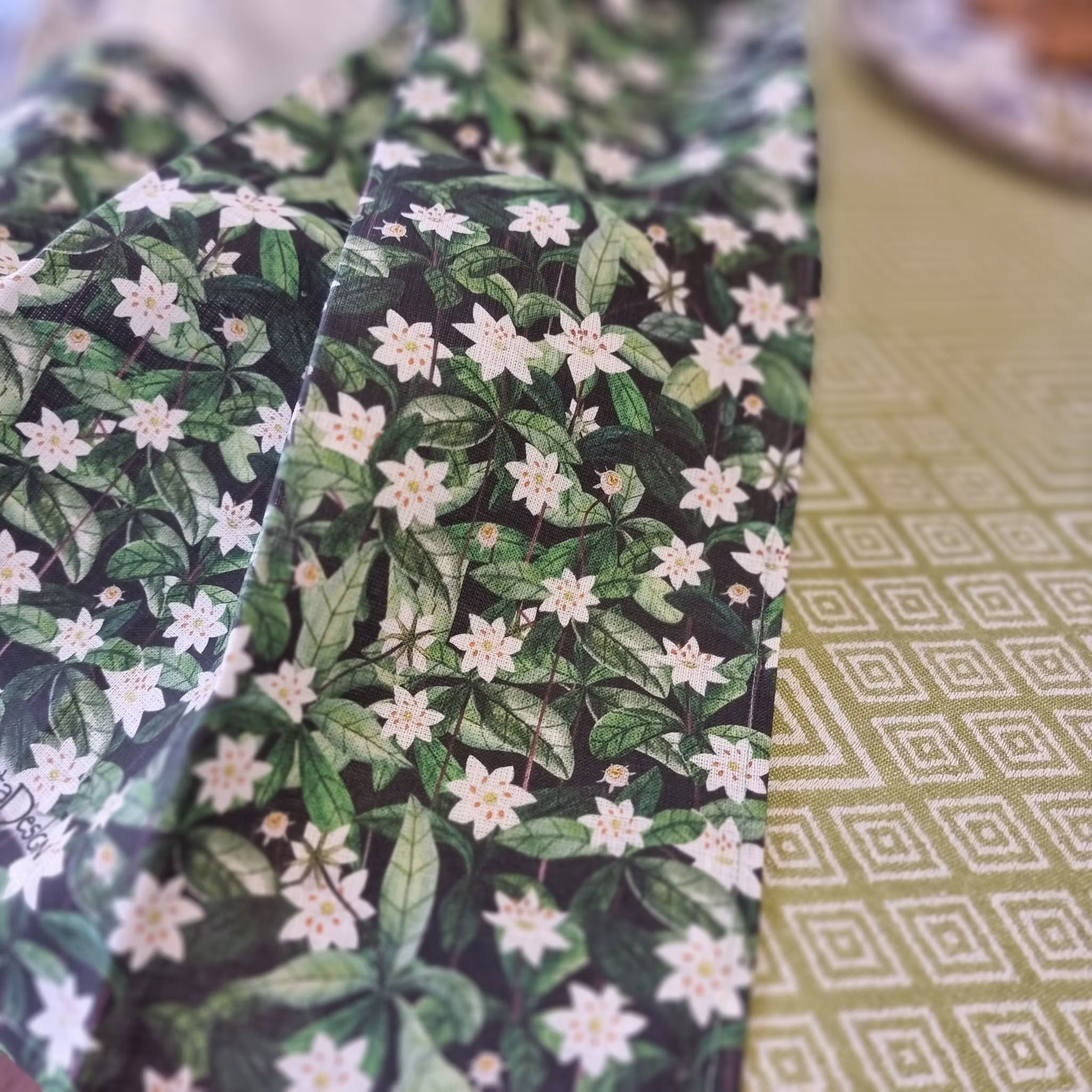 En vacker handduk i 100% linne med Värmlands landskapsblomma, den vackra Skogsstjärnan. Den gröna färgen ger en känsla av skogens djup, där de ljusa blommorna breder ut sig som en somrig äng. En stilfull hyllning till naturen – perfekt för den som vill ta med sig en bit av Värmland hem!