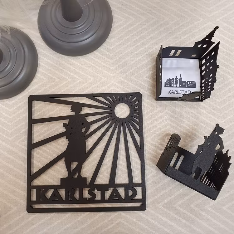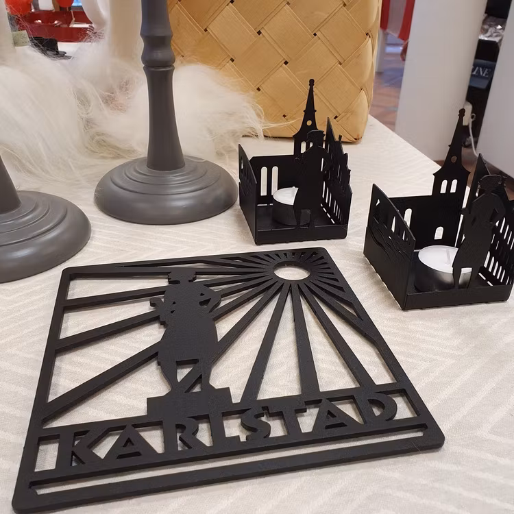 Grytunderlägg med Sola i Karlstad i metall. Mått 20x20 cm. Kommer in igen ca 10 dec!