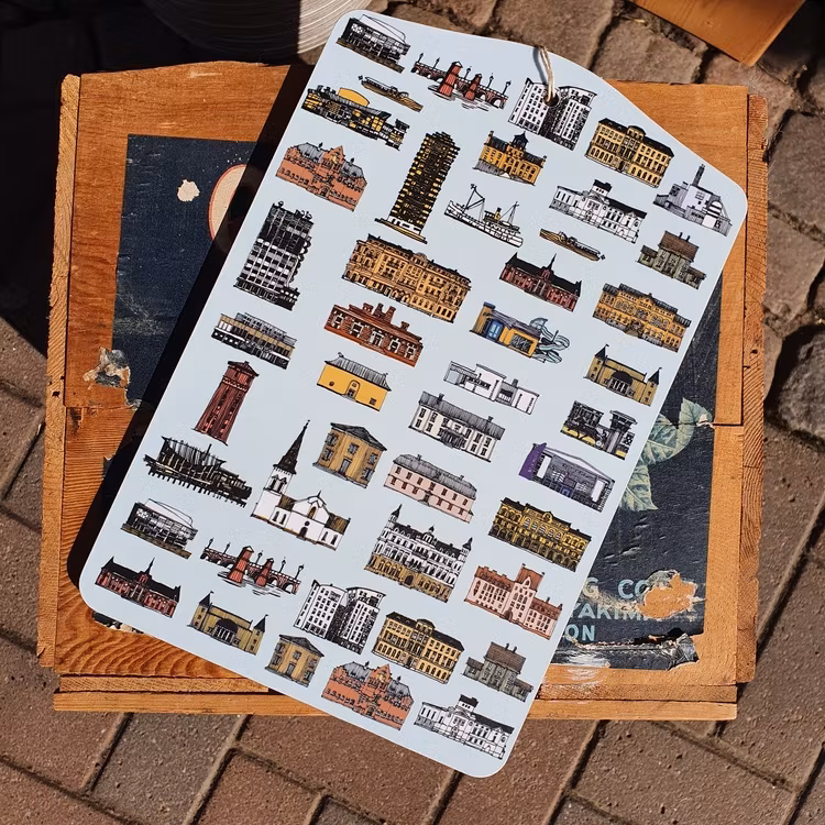 Svensktillverkad skärbräda med motiv av Gunnar Lidén, där välkända byggnader från Karlstad sammansatts i ett detaljrikt och charmigt collage. En stilfull hyllning till stadens arkitektur och en fin present till den Karlstadsälskande! Mått 19 x 29 cm.